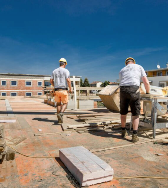 Wir errichten Ihr Haus vom Keller bis zum Dach mit modernsten bautechnischen Systemen. Von der Planung und Koordinierung sämtlicher Bauphasen bis hin zur Schlüsselübergabe liegt alles in unserer professionellen Hand.