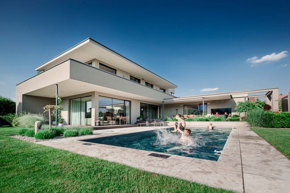 Die alte Mostschenke erstrahlt nun als modernes Restaurant mit einem eleganten Saal und einer beeindruckenden Dachterrasse