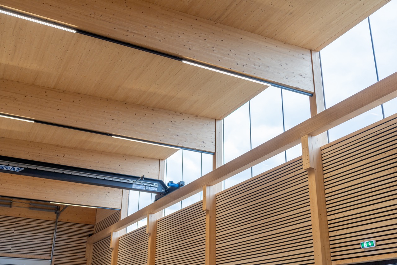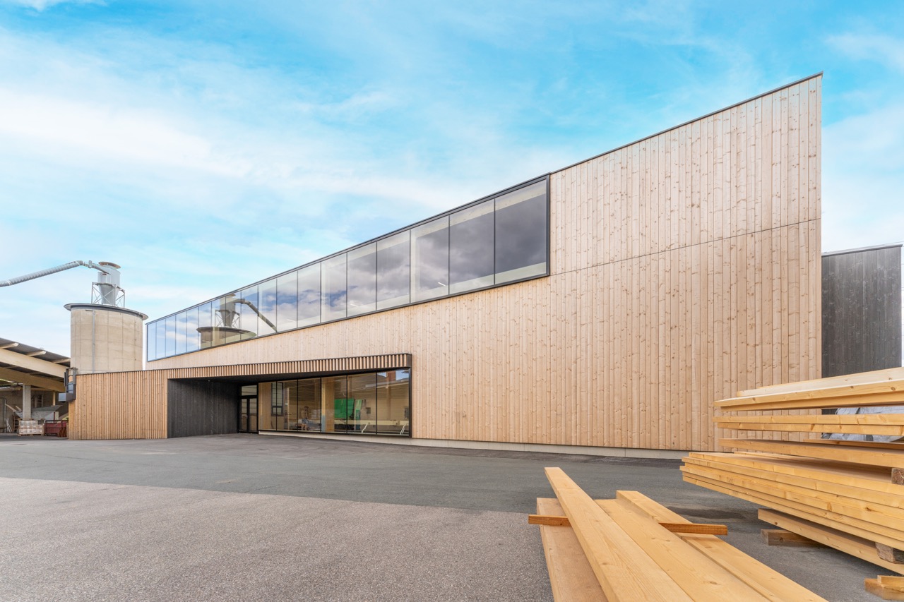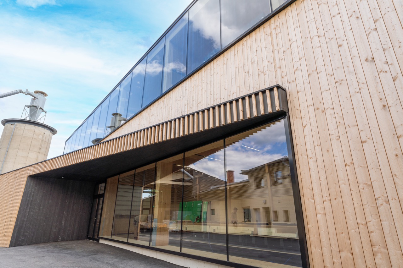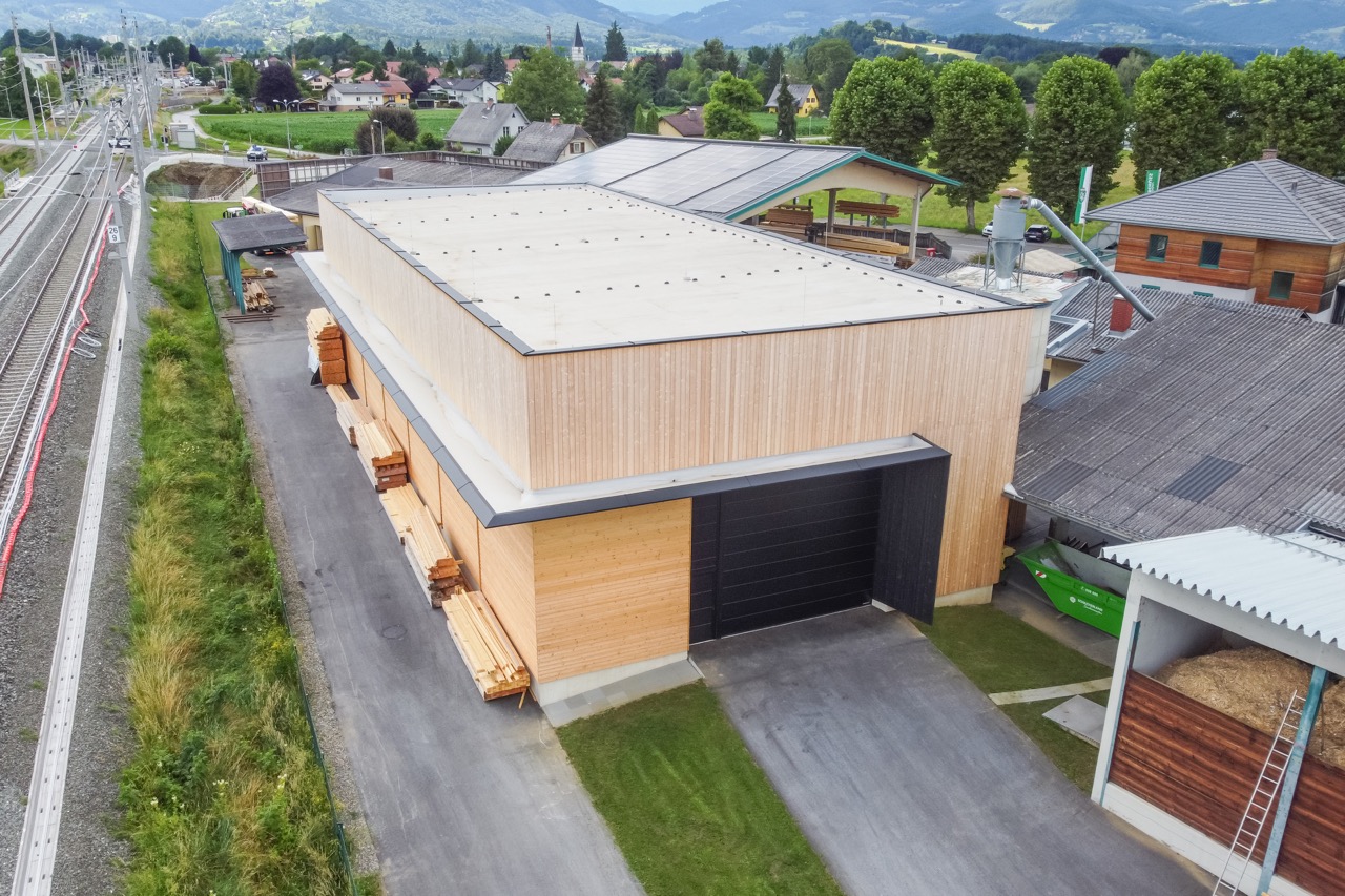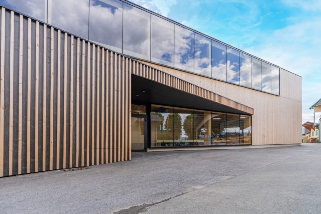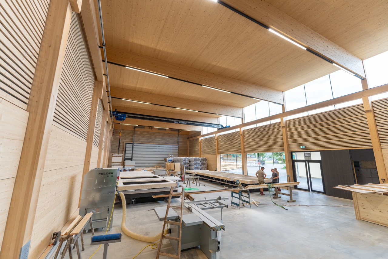 Wir errichteten diese hochmoderne Produktionshalle, die komplett aus Holz besteht – von der Tragkonstruktion bis zur Fassade und den Innenverkleidungen.
