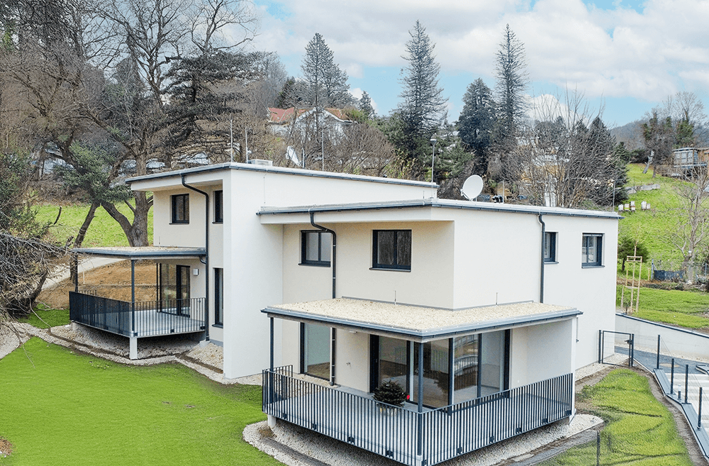 In der Krottendorferstraße vereint diese moderne Wohnanlage urbanes Wohnen mit naturnaher Erholung. Das zweigeschossige Gebäude umfasst 12 großzügig geschnittene Wohneinheiten mit zeitgemäßer Ausstattung. Große Fensterflächen sorgen für lichtdurchflutete Räume, während Balkone und Terrassen einen herrlichen Blick auf die umliegende Landschaft und die Stadt Graz bieten.